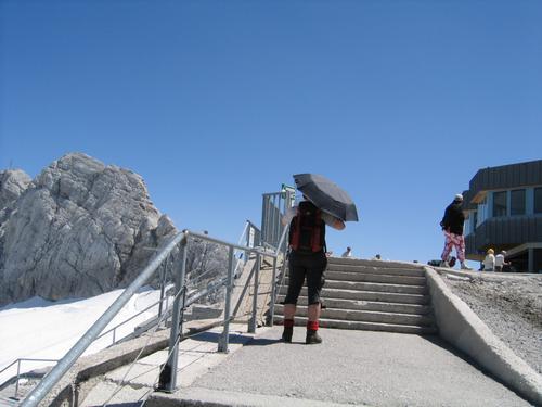 | An einem einzigen Tag werden sämtliche Klischee´s bedient. So wie dieser "Sonntagswanderer", der einen Regenschirm als Sonnenschutz verwendet |