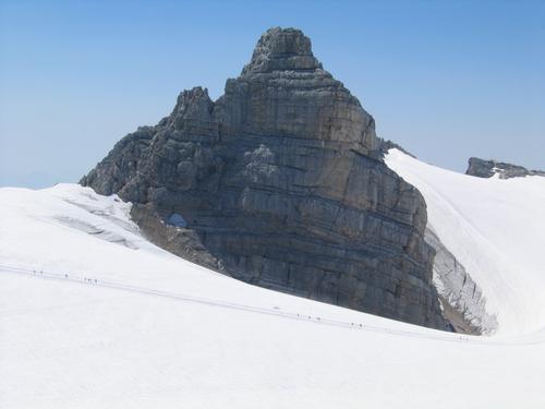 | Horden von "Auflüglern" schreiten nördlich der "Dirndln" vorbei - gut erkennbar ist hier die Gletscherhöhe |