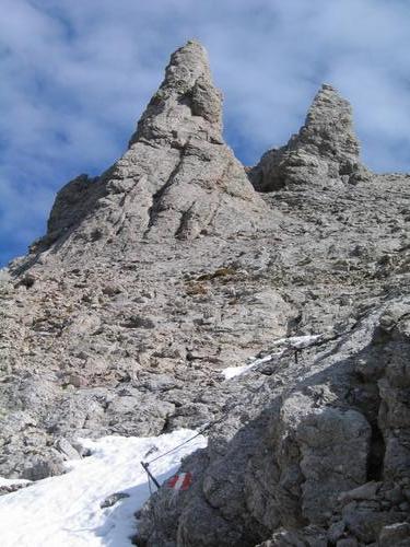 | An einigen Stellen um die Edelgrießhöhe und den Edelgrießgletscher helfen Drahtseile über die schwierigsten Stellen hinweg |