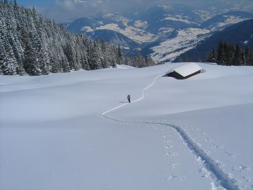 Ich hatte das seltene Privileg, als erster eine Spur im neuen Pulverschnee ziehen zu dürfen.