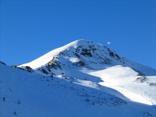 | Ein Ballon über dem vermeintlichen Kreuzkogel. Links die "Große Windlucken". Erst als ich am Berg oben stand, merkte ich, dass das nur ein "Vorgplänkel" ist. |