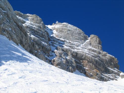 Um uns genügend Schwung für die Abfahrt zu holen, steigen wir noch bis zur Randkluft unter dem Niederen Dachstein auf.