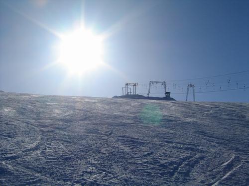 Die verlassenen Pisten werden am späten Nachmittag für den nächsten Tag präpariert.