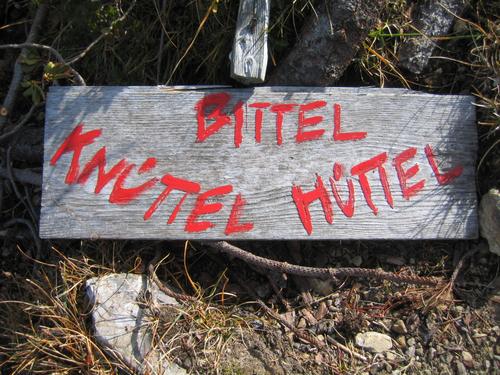 Beim Abstieg von der Kufsteinscharte zur Grafenbergalm. Was wollte uns der Verfasser dieser Zeilen damit wohl sagen ?