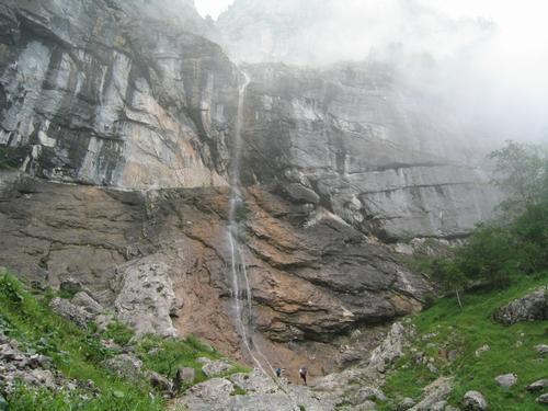 Der Weg führt unter einem Wasserfall vorbei - zum Größenvergleich: Im Bild befinden sich gerade 2 Wanderer rechts des Wasserfalles.