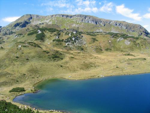 | ... über dessen Westufer unser nächstes Ziel - die Sonntagkarhöhe - aufragt. Den Gipfel erreichen wir über die Scharte am linken Bildrand. |