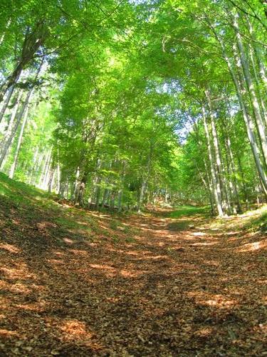 Was anfangs noch idyllisch wirkt - der Weg im stellenweise doch recht steilen Wald über den laubbedeckten, raschelnden Waldboden ...