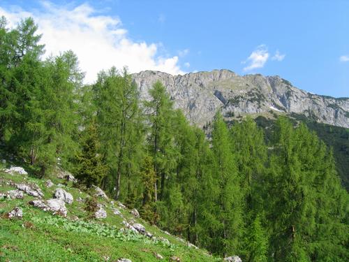 Der untere und größte Teil des Waldes besteht aus Laubbäumen - erst im obersten Abschnitt geht der Laubwald in Nadelwald über - auch einige Lichtungen gibt es hier oberhalb der Brunnalm