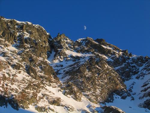 Der Mond ist bereits über den Vetternspitzen aufgegangen.