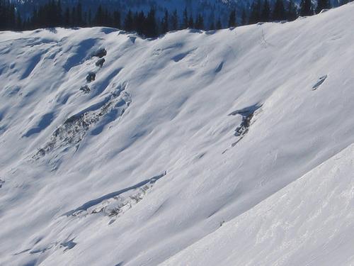 ... und zahlreiche Anrisse zeugen von der Gefährlichkeit der Hänge