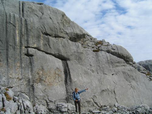 | Ingrid zeigt mir jene Stelle, an der sie mit ihren Freundinnen in ein Gewitter gekommen ist. Einige Bilder der Wandergruppe werde ich demnächst hier veröffentlichen => die Haare der Damen standen alle wegen der elektrostatischen Aufladung senkrecht nach oben - sehr eindrucksvoll aber auch höchst gefährlich. |