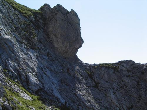 Zurück bei der Schlüsselstelle: Die Herzmann-Kupfer-Platte. Beim Rückweg viel einfacher zu bewältigen, da man nun leicht ansteigen kann (von links unten nach rechts oben).
