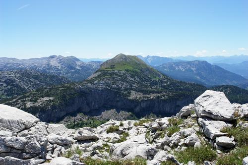 Im Südosten der grüne Elm. Im Taleinschnitt zwischen Hochkogel und Elm liegen Pühringer Hütte und Elmsee (im Bild nicht erkennbar).