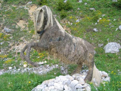 Am Rückweg wähle ich den die Forststraße abkürzenden Waldsteig - vorbei bei einem statischen Pferd ...