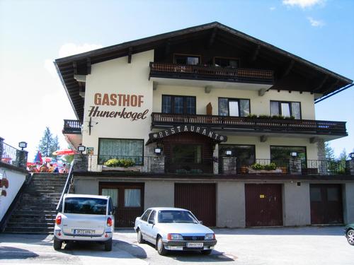 | Zurück beim Ausgangspunkt nahe dem Gasthof Hunerkogel. Hunderte Autos auf den umliegenden Parkplätzen. Selbst die Straßen ins Tal werden schon als Parkfläche benutzt. Der Tourismus blüht am Dachstein. |