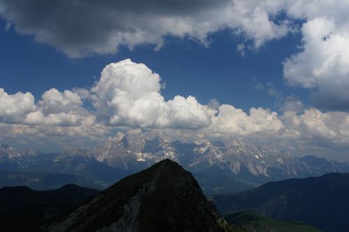 Im Vordergrund im Schatten der Vordere Geißstein - im Hintergrund das Dachsteingebirge ...
