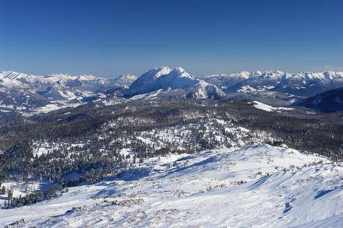 Grimmingblick. Davor die weiten lichten Wälder des Kemetgebirges - AlpenYeti´s Schneeschuhparadies.