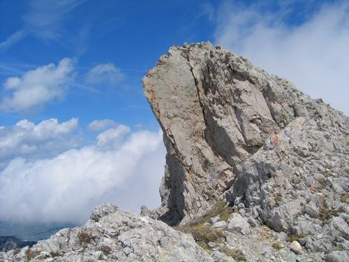 Im obersten Abschnitt geht der Rücken in einen zunehmend schmaleren, zerklüfteten Felsgrat über.