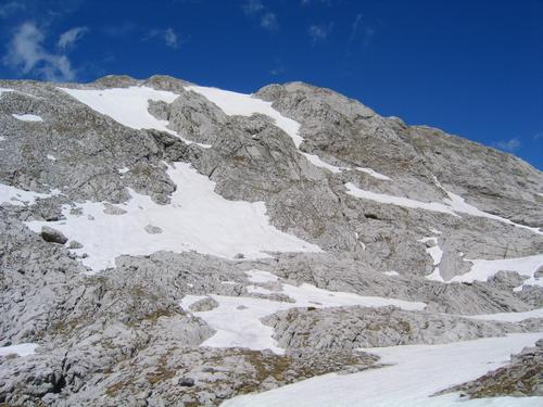 ... so daß ich weglos über einige Felskuppen bei maximaler Schwierigkeit I hinabklettere bzw. -wandere ...