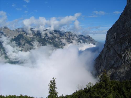 | Der enge Taleinschnitt zwischen Hagengebirge und Tennengebirge um den Paß Lueg liegt noch unter dichtem Nebel ... |