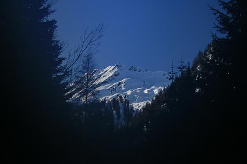 Bereits im Morgengrauen erkennt man das hügelige Aufstiegsgelände auf die Hochrotwand.