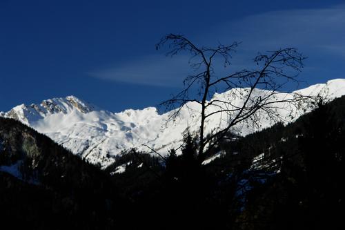 Beim Aufbruch am Seilsitzberg, oberhalb des schattigen Karteisgrabens. Im Hintergrund leuchten die schneebedeckten Tourengeherparadiese über dem Großarltal herunter.