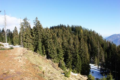 Wir haben aber das Glück, daß uns einige Fußspuren den Weg zum gänzlich bewaldeten Leistenstein führen.