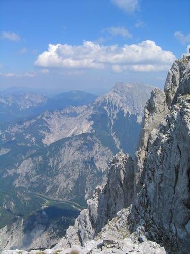 Blick nach Norden zum wuchtigen Großen Buchstein. Unten im Tal schlängelt sich die Enns durch´s Gesäuse.