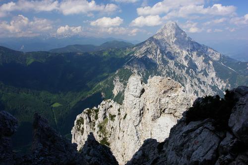 Weiter oben: Über die "Schildkröte" (oder meinetwegen das Insekt) hinweg zum Admonter Reichenstein.