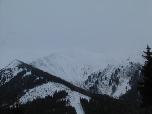 Bereits beim Start nächst der Triebener Bundesstraße zeigt ein Blick in die Berge, was uns heute erwarten sollte: Tiefe Wolken, Schnee bzw. Regen, Wind.