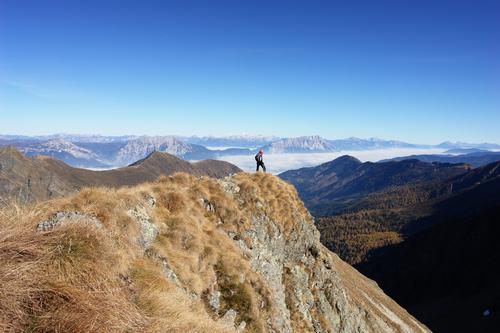 Ingrid sucht eine Abstiegsmöglichkeit über die steile Ostflanke.