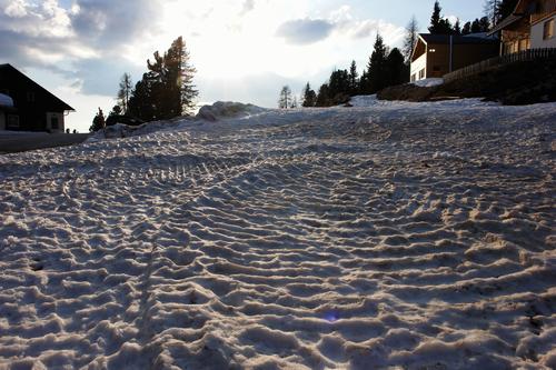 Nach der Arbeit Auffahrt zum Steinerhaus. Kurz über die gerippte Schipiste bergab.