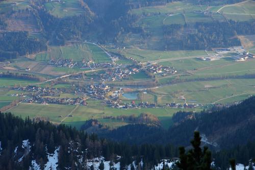 Tiefblick nach Aich mit dem Badesee.