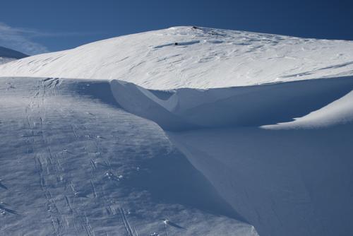 ... während ich einfach nicht weiterkomme, angesichts der beeindruckenden windgeformten Schneegebilde.