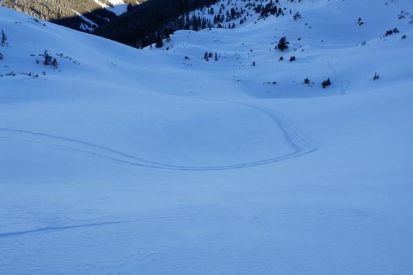 ... bereue ich es heute zum ersten Mal in diesem Winter, mich nicht für die Tourenschi, sondern für die Schneeschuhe entschieden zu haben.