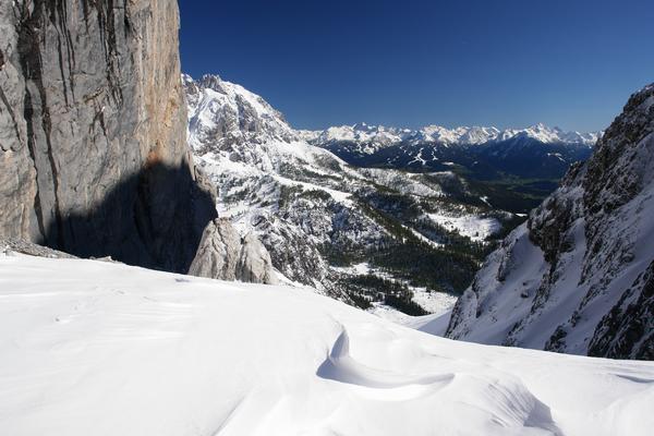 | Auf Grund des eingewehten Steilhanges haben wir ihnen aber davon abgeraten. Und da wir auch nicht die Spurarbeit übernehmen wollten, sind auch sie kurz nach uns wieder umgekehrt. |