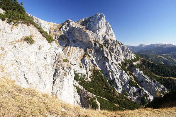 | Wir hatten zwar beim Anstieg zum Hahnstein kurz über die Möglichkeit gesprochen, eventuell auch noch den Kreuzkogel mitzunehmen, aber das eigentliche Ziel sollte der Hahnstein sein. Stillschweigend stiegen wir dann aber doch automatisch weiter, die prächtigen Ausblicke zum Admonter Kalbling (Kaibling) genießend. |