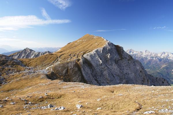 Blick zurück auf die sanfte Abstiegsseite des Riffel (der Anstieg erfolgte über die gegenüber liegende felsige Seite).
