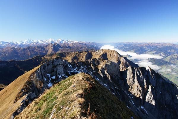 | An einer halbwegs windgeschützten, und damit auch recht milden Stelle in der Sonne genießen wir unsere Jause. Dennoch machen wir uns aber bald wieder auf den Weg. Direkt vom Gipfelkreuz zieht ein deutliches Steiglein nordwärts. Dieser Steig ist weiter unten wieder in den von uns gewählten Weg eingemündet, so daß er eigentlich eine gute Abkürzung wäre. |