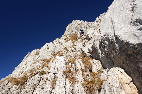 Und auch im mittels zahlreichen Stahlklammern bestens gesicherten Kletterbereich eilt uns Herfried voraus ...