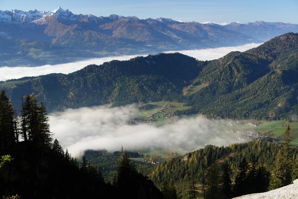 Über Gröbming-Winkl beginnt sich der Nebel schön langsam aufzulösen.