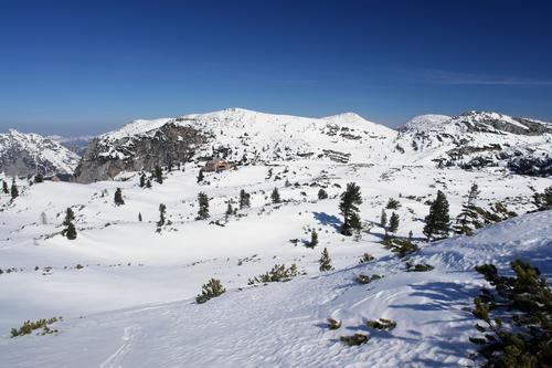 Blick über das Wiesberghaus hinweg zum Krippenstein.