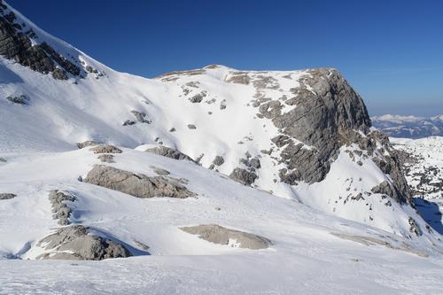 Blick zurück auf das steile Aufstiegsgelände auf den Nd. Ochsenkogel (links der nackten Felswände).