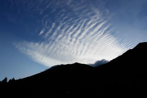 Start bei der Kreutzerhütte südlich des Sölkpasses. Interessante Wolkenformationen zieren den morgendlichen Himmel.
