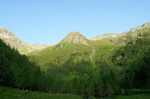 | ... aber wenig später hat sich die Wolke aufgelöst und gibt den Blick auf unser erstes Gipfelziel - den Sauofen - in Bildmitte frei. Unser Aufstiegsgebiet wird - weglos - rechts des Gipfels in die Reichascharte hinauf verlaufen. Links werden wir am späteren Nachmittag über einen markierten Weg wieder herunterkommen. |