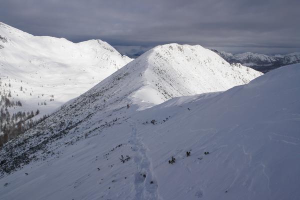 ... der als kaum auszunehmendes Pünktchen schon fast drüben am Gipfel des Spazeck steht.