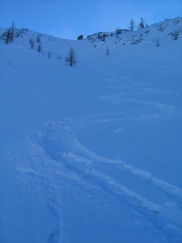 Abfahrt über einige mittelsteile Hänge ...
