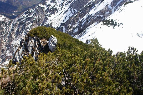 Hier konnte ich zwar der Lawinengefahr ausweichen, die Überwindung des steiglosen Latschengürtels war aber sehr mühsam und anstrengend.