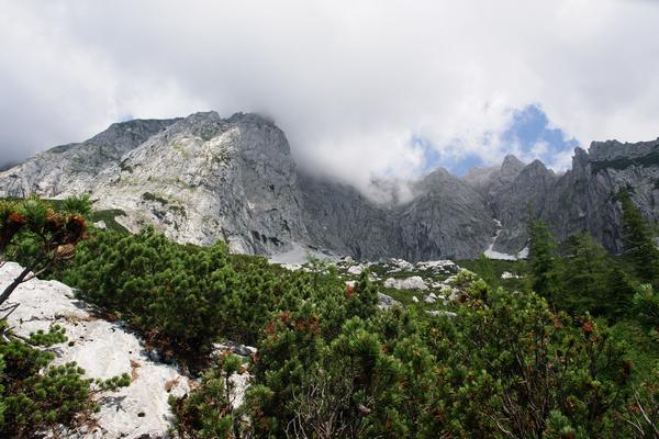 Bei unserer Schneeschuhwanderung am 23.04.2006 sind wir hier einfach gemütlich über die mehr als mannhohen Latschenfelder direkt bergauf gewandert.