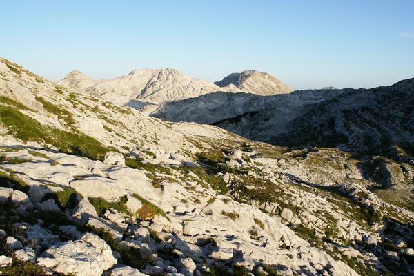 | Im Westen zeigen sich die Gipfelerhebungen von Hochweiß, Plankermira und Weißer Wand, die ich am 26.07.2007 besucht habe und an deren im Bild erkennbaren Ostseiten ich heute am Nachmittag über das Mäuerltal wieder zurückkommen werde. |